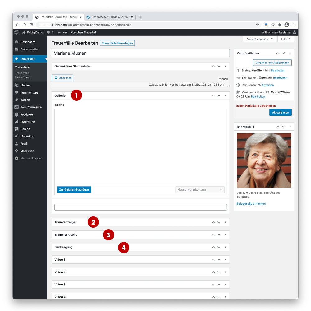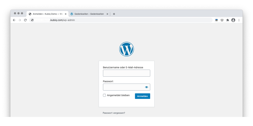 Melden Sie sich dafür wieder in Ihrem Gedenkseiten-Backend (ihr-kürzel.kubiq.com) an.