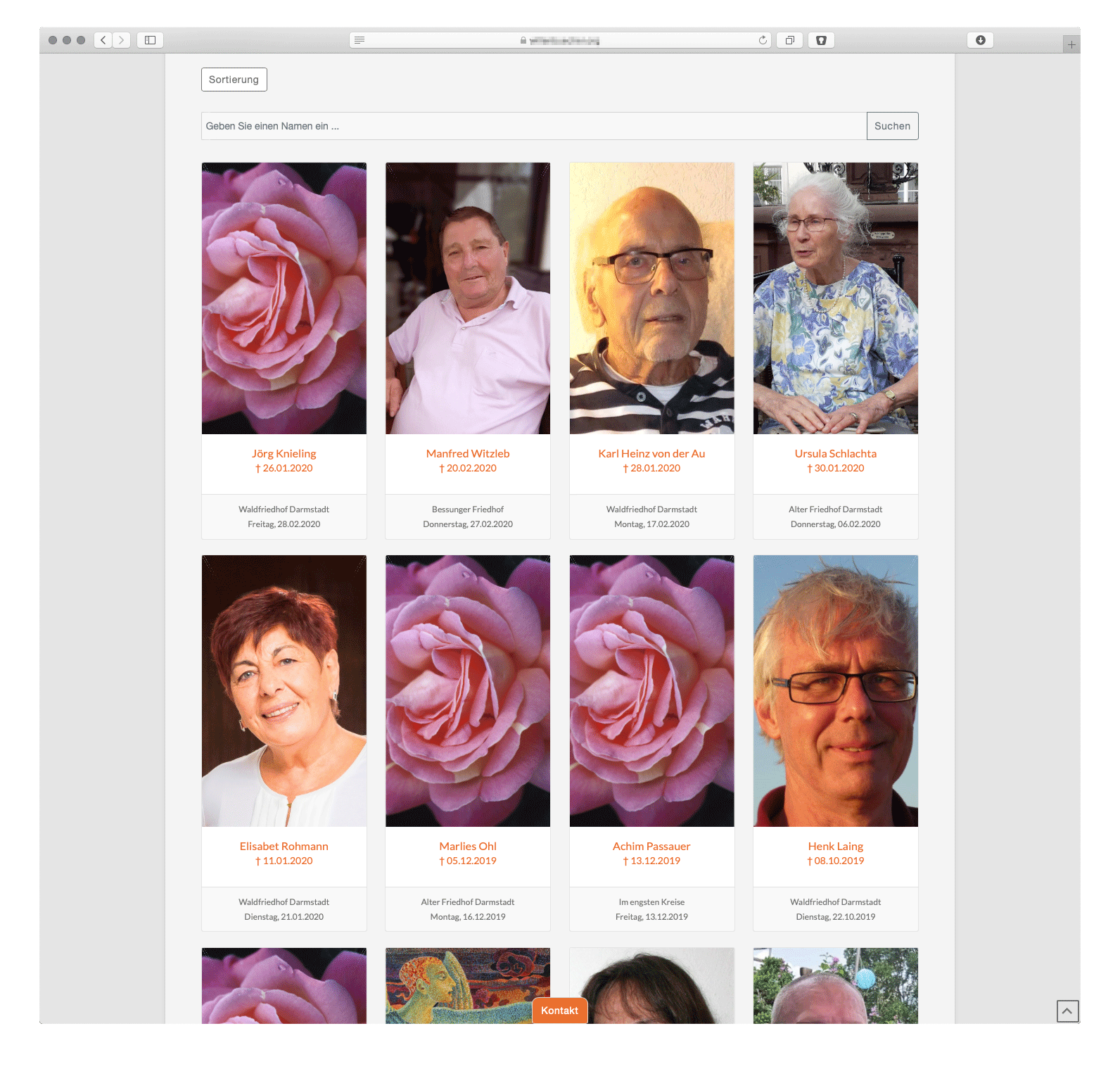 Auf der Bestatter-Webseite werden alle veröffentlichten Trauerfälle in einer Übersicht auf der Unterseite „Gedenkseiten“ dargestellt.
